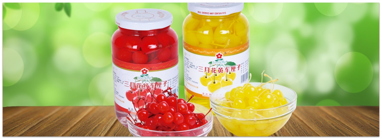 - 產品描述:本產品采用應季新鮮的櫻桃精制而成,果肉晶瑩透亮、帶有自然的綠色,色澤均一、形狀飽滿,味道甜中帶酸,有輕微的冰涼感和濃濃的水果風味。